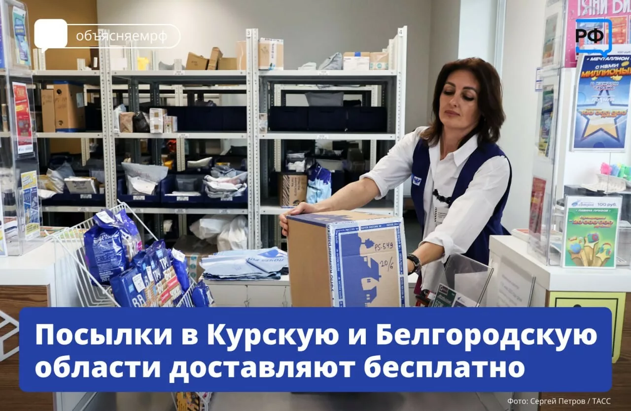 С 27 августа в отделениях «Почты России» можно бесплатно отправить посылки весом до 10 килограммов в Курскую и Белгородскую области. Жители этих регионов также могут отправить свои вещи в любой населённый пункт страны без оплаты. Количество посылок на одного человека не ограничено.