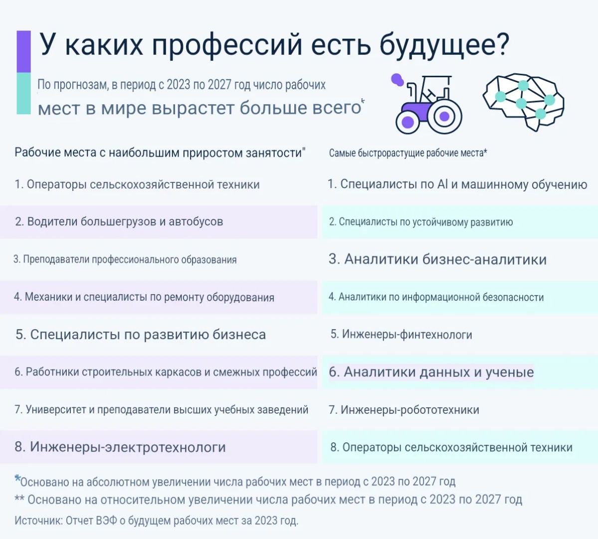 Самые востребованные профессии на ближайшие 5 лет(2023-27)-дынные из отчета Всемирного экономического форума за 2024 год.