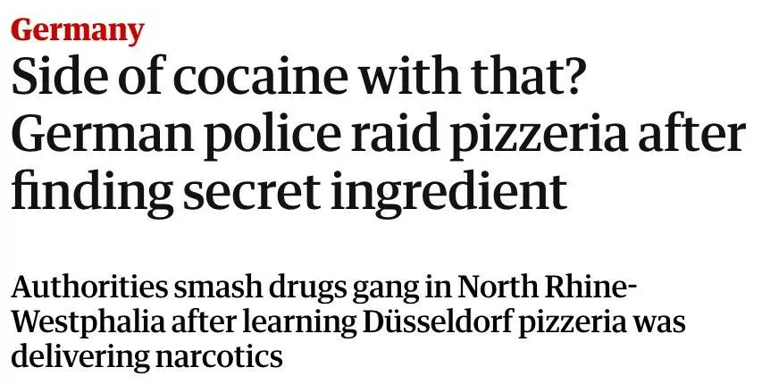 В Германии полиция обнаружила пиццерию, которая тайно добавляла кокаин в пиццу, чтобы увеличить продажи.