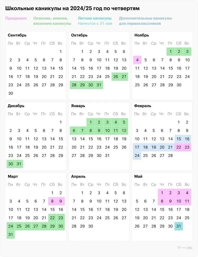 График школьных каникул на 24/25 учебный год.