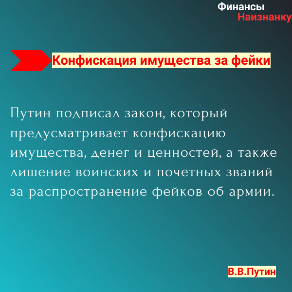 14 февраля 2024 года Президент Владимир Путин подписал закон, который предусматривает конфискацию имущества, денег и ценностей, а также лишение воинских и почетных званий за распространение фейков об армии.