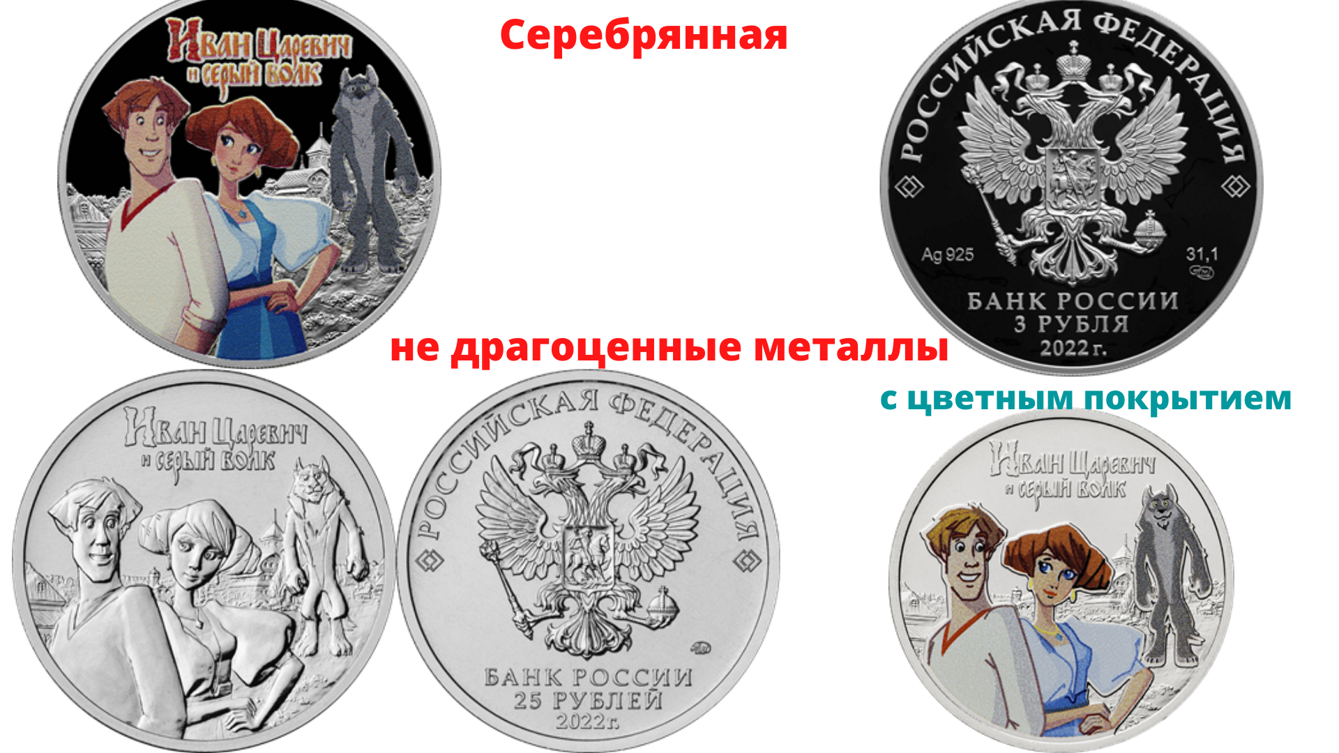 27 мая 2022 года Банк России выпустил в обращение памятные монеты Иван Царевич и Серый Волк серии «Российская (советская) мультипликация».