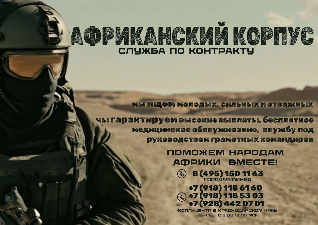 Министерсто обороны Российской Федерации ждёт добровольцев для нового подразделения – Африканский корпус.