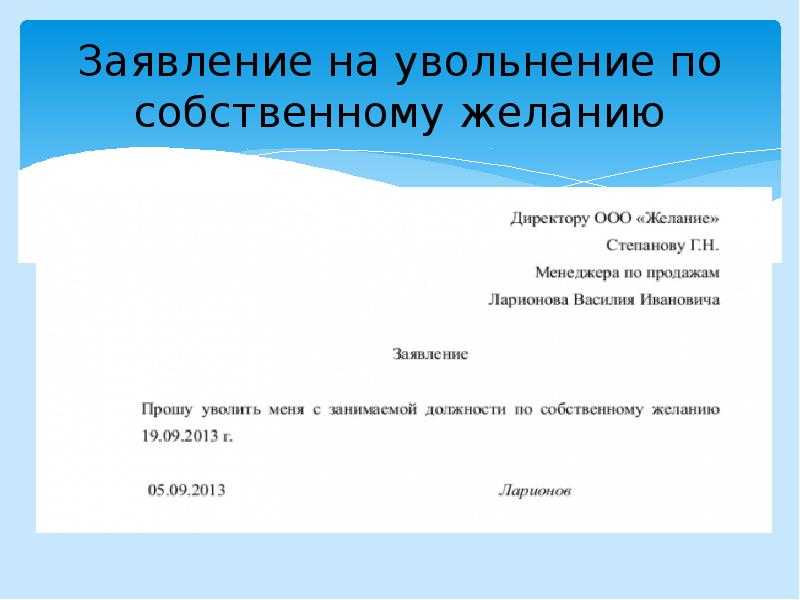 - Скачать образец заявления на увольнение по собственному желанию.