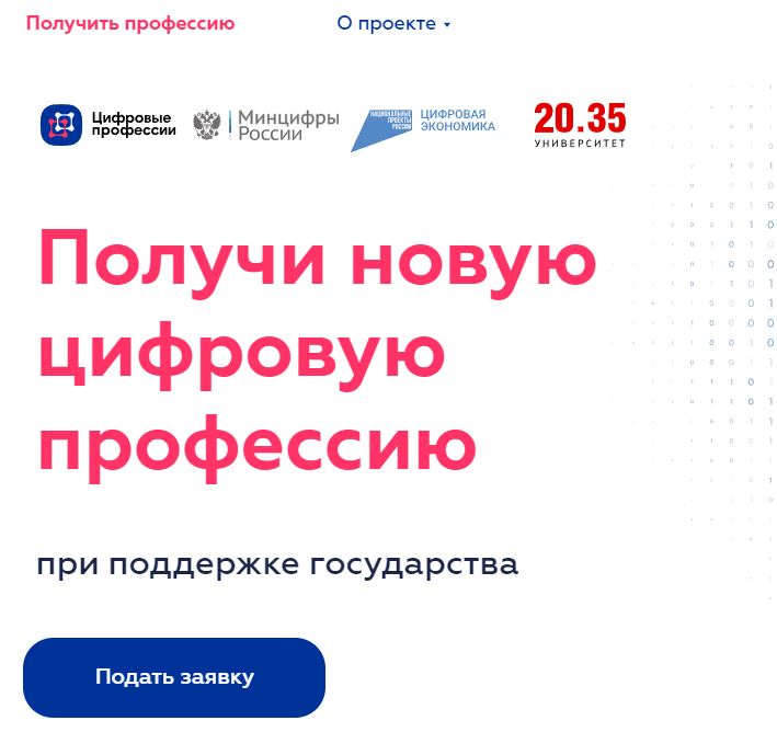 Получить дополнительное образование в IT-сфере в рамках проекта «Цифровые профессии» смогут граждане трудоспособного возраста, имеющие образование не ниже среднепрофессионального, а также студенты вузов и колледжей. В этом году программа рассчитана на обучение 57,5 тысячи человек», — таковы подробности. А подать заявку на обучение теперь можно будет через портал госуслуг. Узнайте первым о старте набора на программы в 2022 году на сайте проекта . Организатор минцифры.