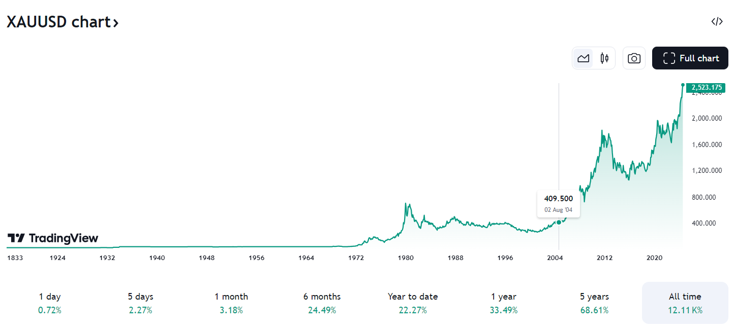 С января 2024 года стоимость драгоценного металла взлетела более чем на 20%, и теперь 1 унция продаётся более чем за 2500 долларов.