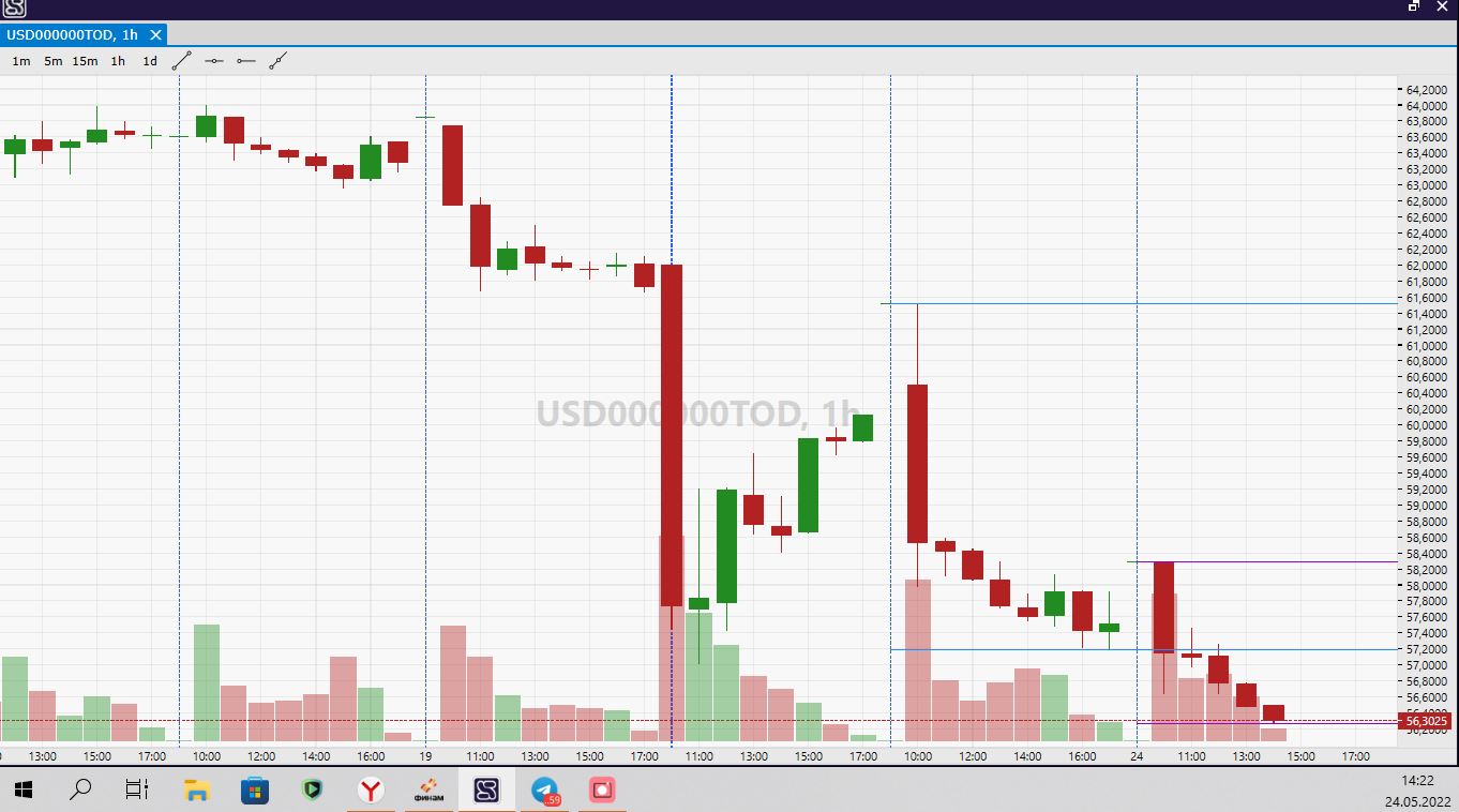 Курс доллара на 14-22 часа 24 мая 2022 года. Почему рубль растет?