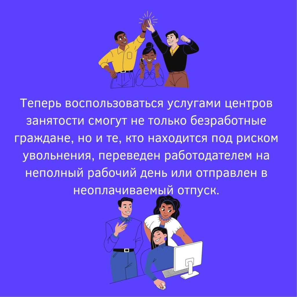 Теперь воспользоваться услугами центров занятости смогут не только безработные граждане, но и те, кто находится под риском увольнения, переведен работодателем на неполный рабочий день или отправлен в неоплачиваемый отпуск.