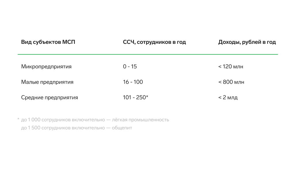 Малые и средние предприятия (МСП) — это компании и ИП, которые входят в единый реестр субъектов малого и среднего предпринимательства (п. 1 ст. 3 Федерального закона от 24.07.2007 № 209-ФЗ «О развитии малого и среднего предпринимательства в Российской Федерации»). В реестр могут попасть хозяйственные общества (ООО и АО), товарищества, партнерства, производственные и потребительские кооперативы, крестьянские (фермерские) хозяйства. Субъекты МСП делятся на микропредприятия, малые предприятия и средние.