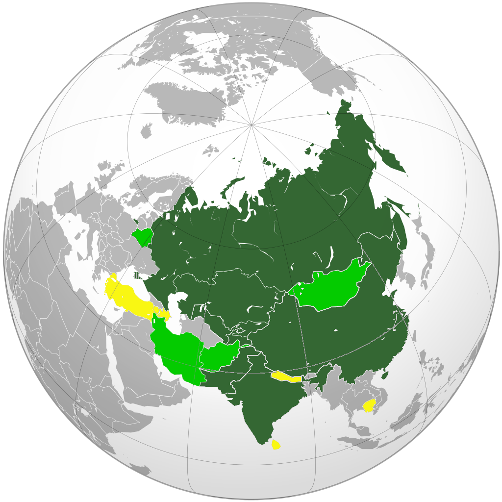 - 9 стран являются государствами-членами ШОС — Республика Индия, Республика Казахстан, Китайская Народная Республика, Кыргызская Республика, Исламская Республика Пакистан, Российская Федерация, Республика Таджикистан, Республика Узбекистан;