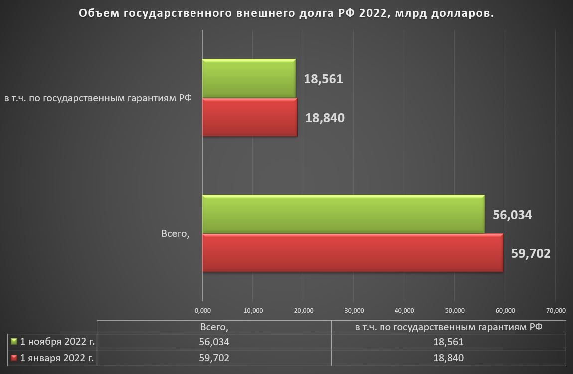 Объем государственного внешнего долга Российской Федерации 2022 года по состоянию на 1 ноября составляет 56,034 млрд. долл. США