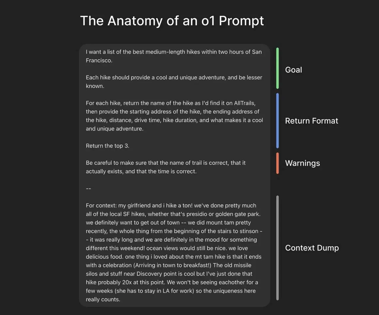 Президент OpenAI, Грег Брокман, поделился интересной «шпаргалкой», как получить наилучшие результаты от работы с ИИЧто такое искусственный интеллект (ИИ)? Технология искусственного интеллекта (ИИ) позволяет компьютерам подражать человеческому интеллекту (имитировать) и решать задачи. Ключевой характеристикой... подробнее. Оказалось, что модели GPT-O1 можно значительно улучшить, если правильно структурировать запросы.