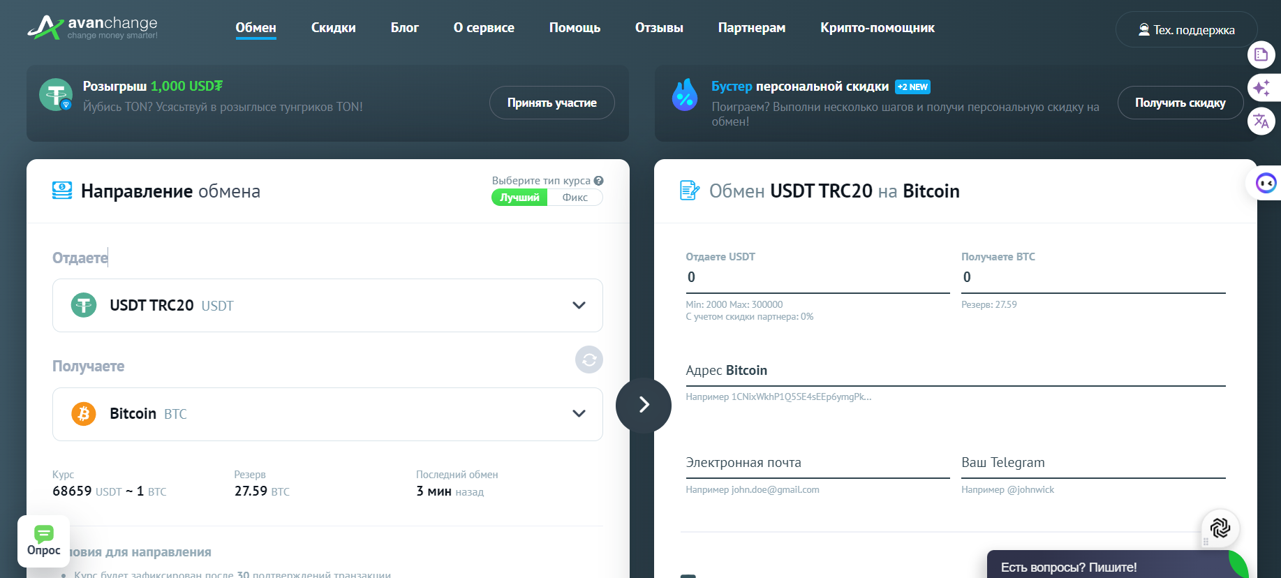 - Безопасность: Надежные обменники, такие, как AvanChange