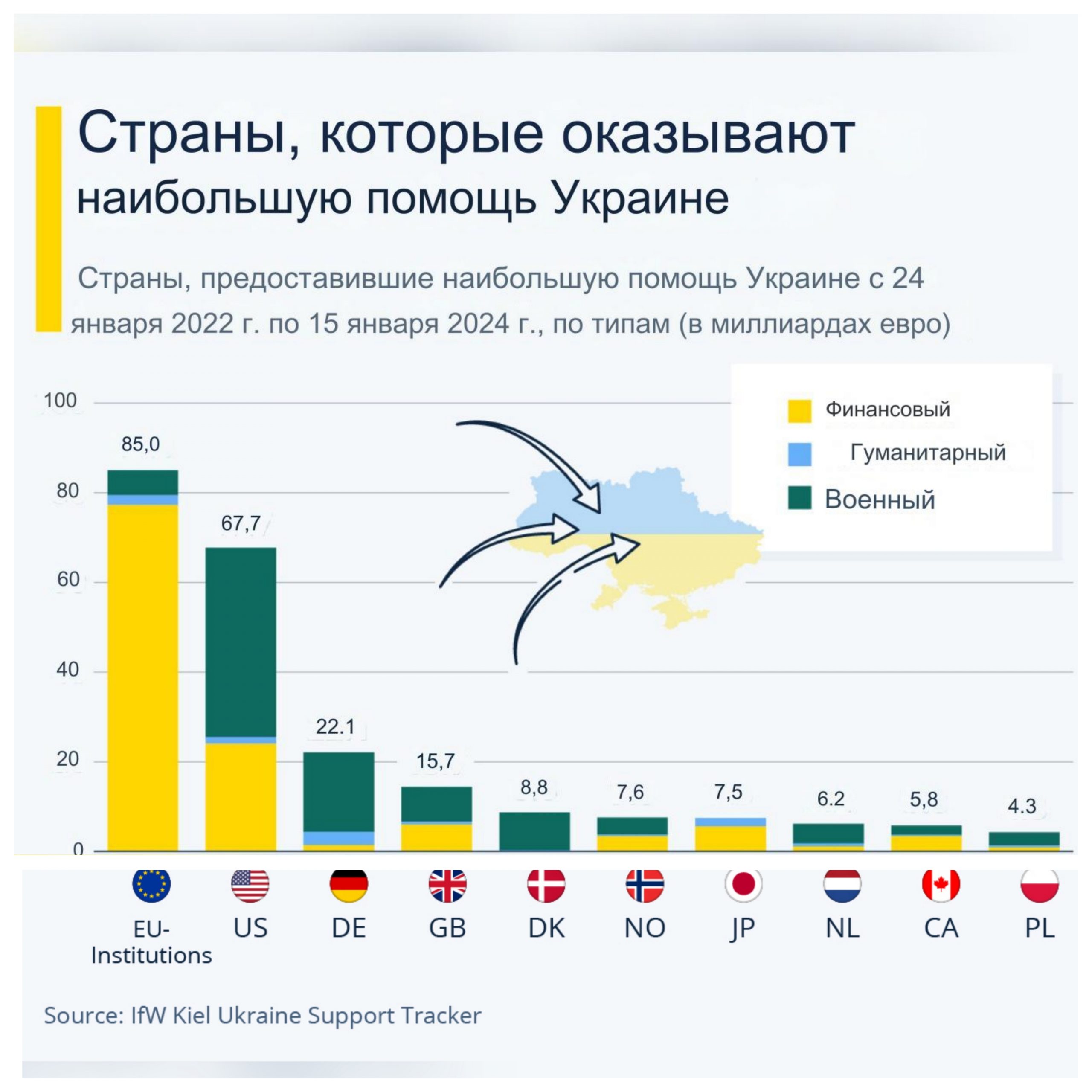 Фактически предоставленная помощь Украине составила более 230 млрд. евро за 2 года с начала СВО.