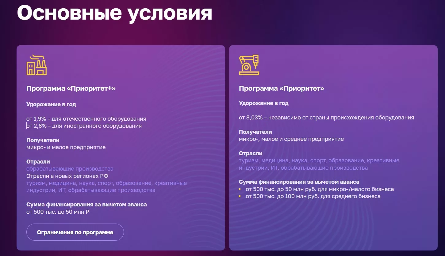 Льготный лизинг оборудования от государства для юридических лиц и ИП