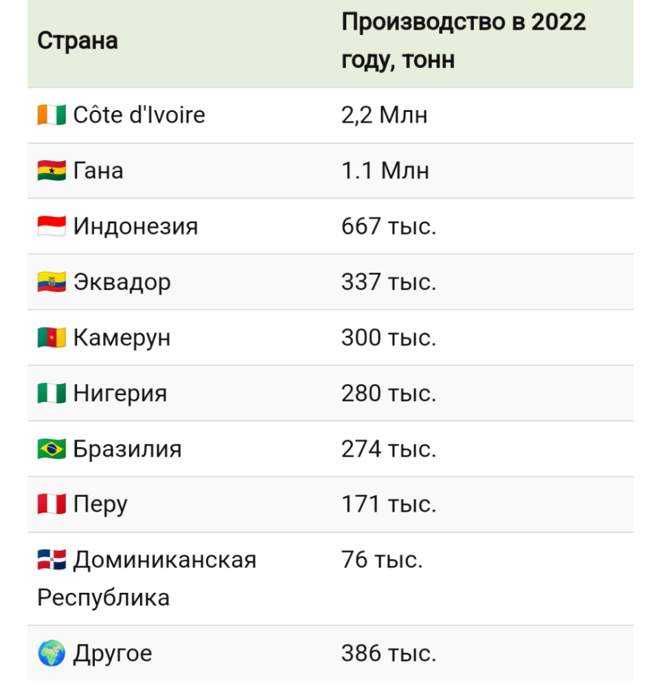 Кот-д’Ивуар и Гана производят огромную долю мирового какао. Обе страны расположены в Западной Африке.