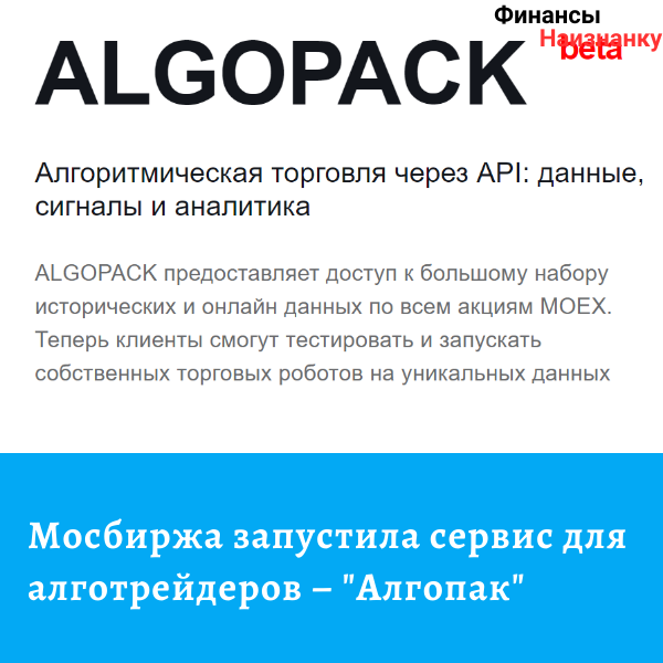 Московская биржаГруппа "Московская Биржа" – крупнейшая российская биржа, единственная в России многофункциональная площадка по торговле акциями, облигациями, производными инструментами, валютой, инструментами... подробнее представила бета-версию своего нового информационного продукта, разработанного специально для алготрейдеров — «Алгопак».