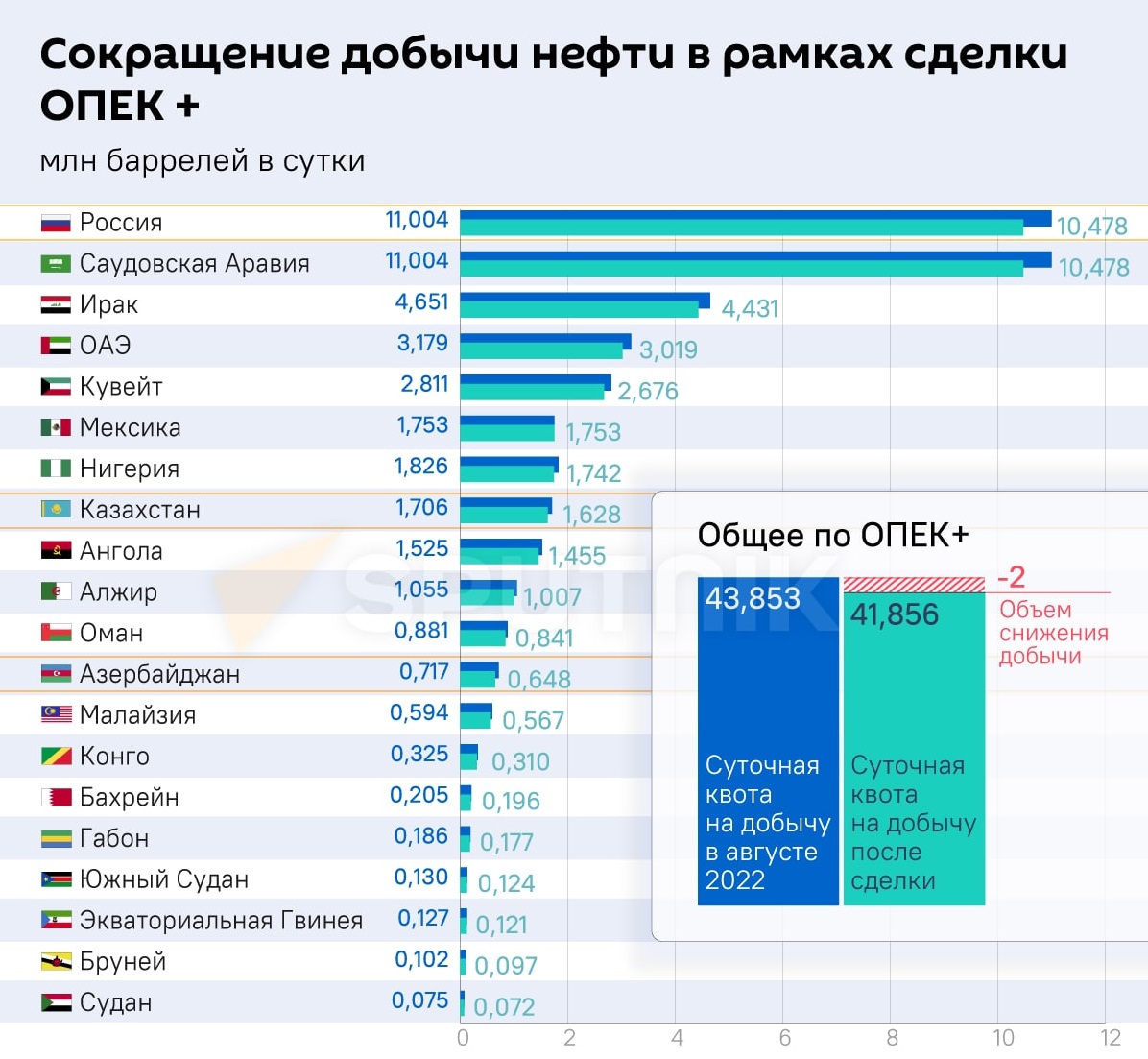 В их числе — Азербайджан и Казахстан. Лидерами сокращения станут Россия и Саудовская Аравия.