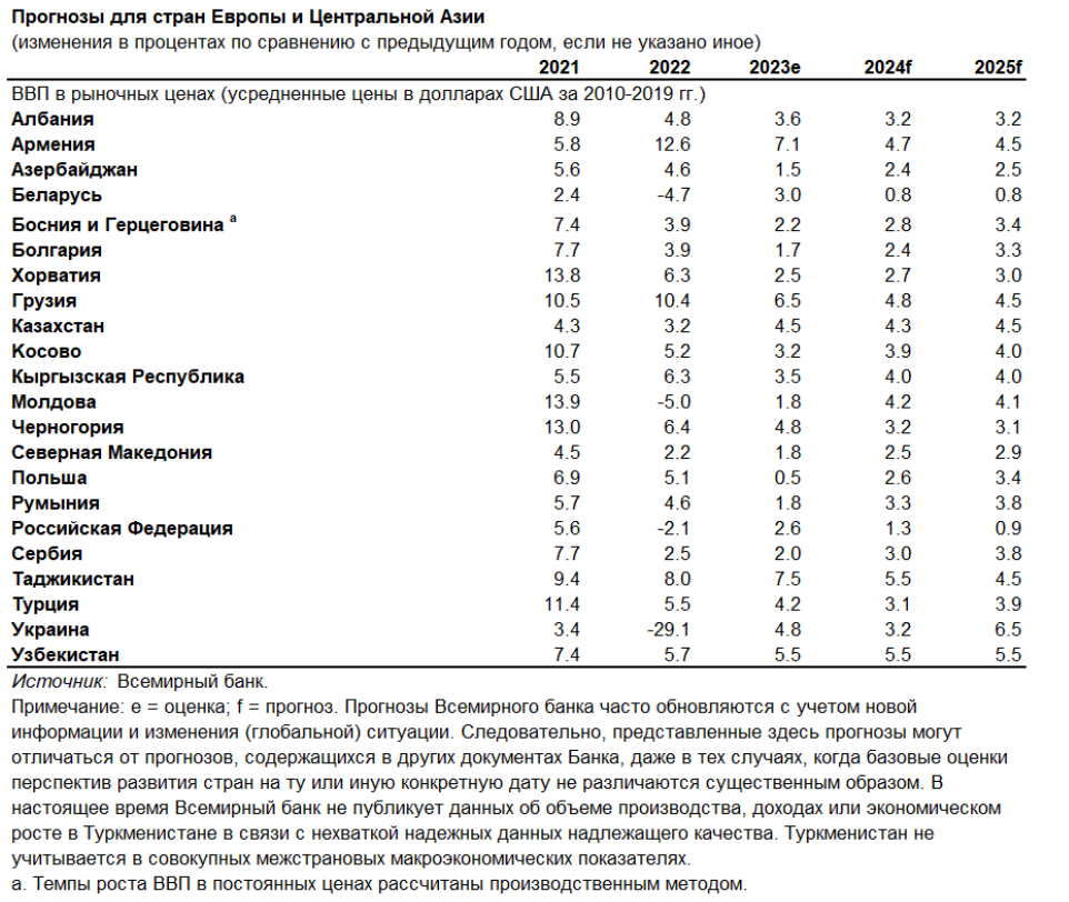 Однако неопределенность из-за СВО на Украине играет важную роль в определении перспектив региона. Без учета этих двух стран, в этом году ожидается ускорение темпов роста в регионе до 3,1 процента, а в 2025 году – до 3,7 процента.
