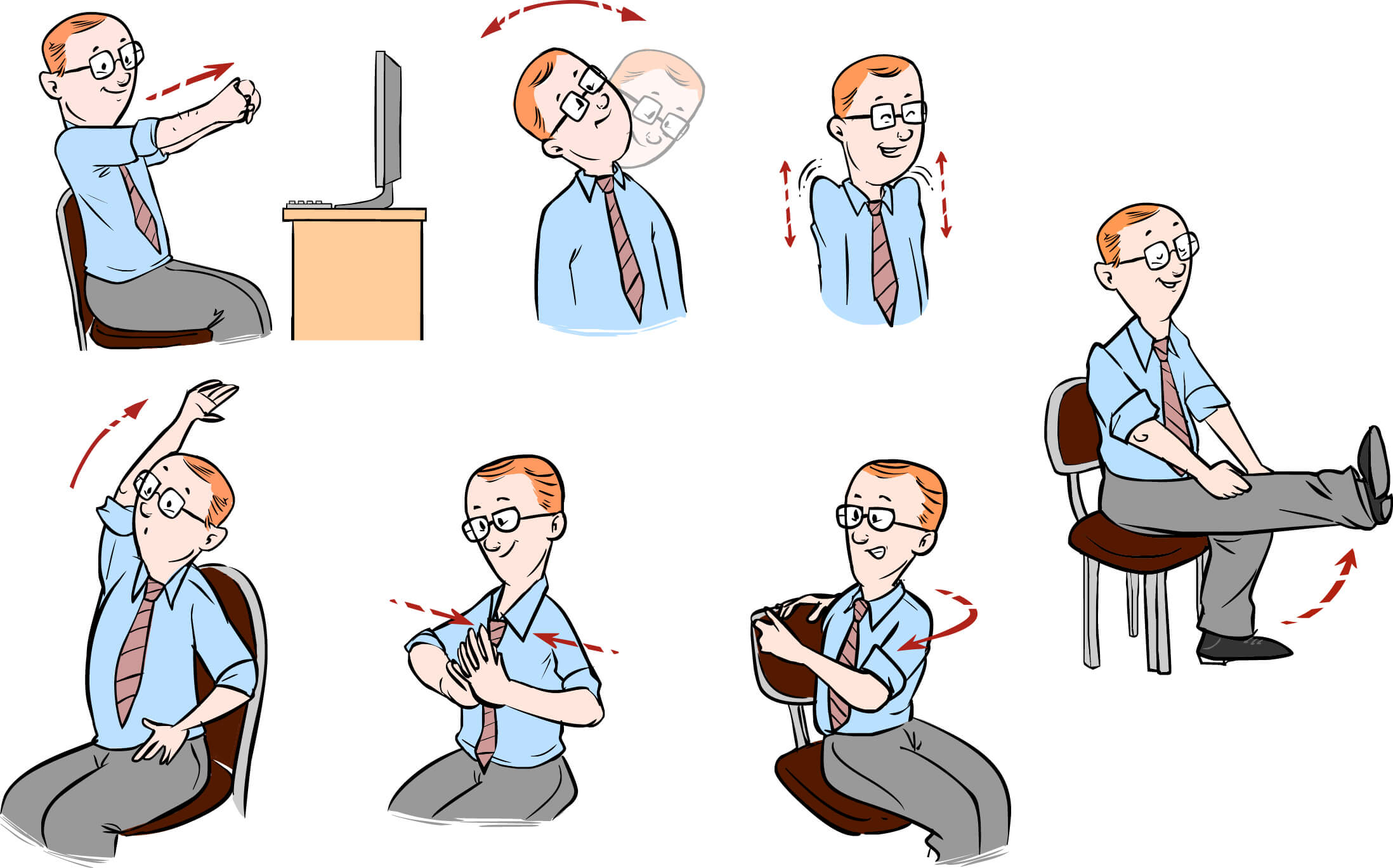 Все эти упражнения можно делать несколько раз в день, чтобы сохранять физическую и психологическую форму во время работы в офисе.