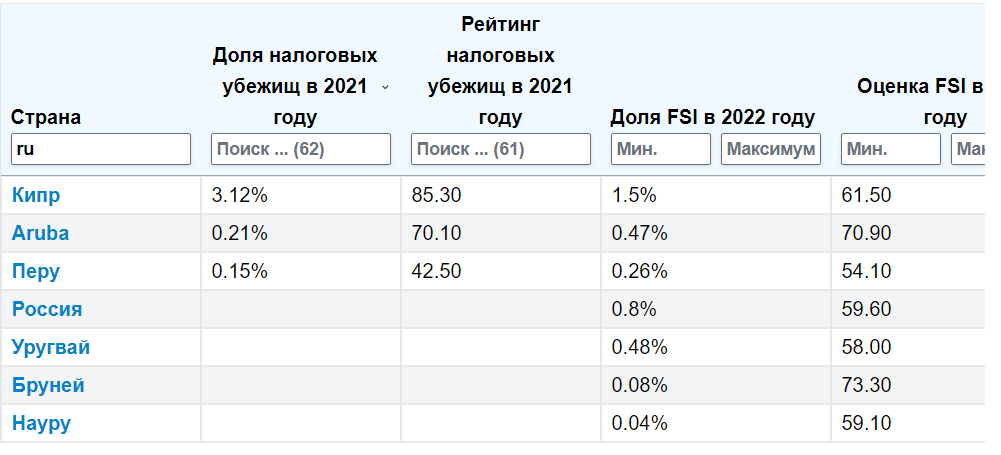 - Индекс финансовой секретности (FSI): Индекс финансовой секретности — это рейтинг юрисдикций, наиболее замешанных в оказании помощи частным лицам скрывать свои финансы от верховенства закона. Чем ниже баллы, тем лучше.