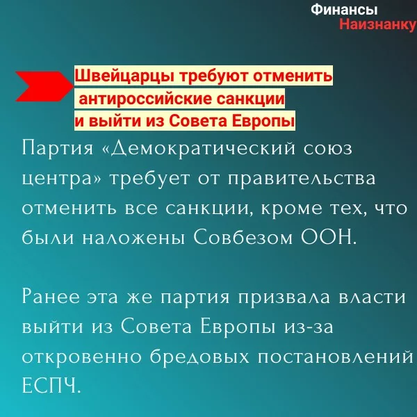 Швейцарцы требуют отменить антироссийские санкции и выйти из Совета Европы