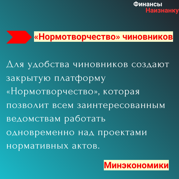 Для удобства чиновников создают закрытую платформу «Нормотворчество», которая позволит всем заинтересованным ведомствам работать одновременно над проектами нормативных актов.