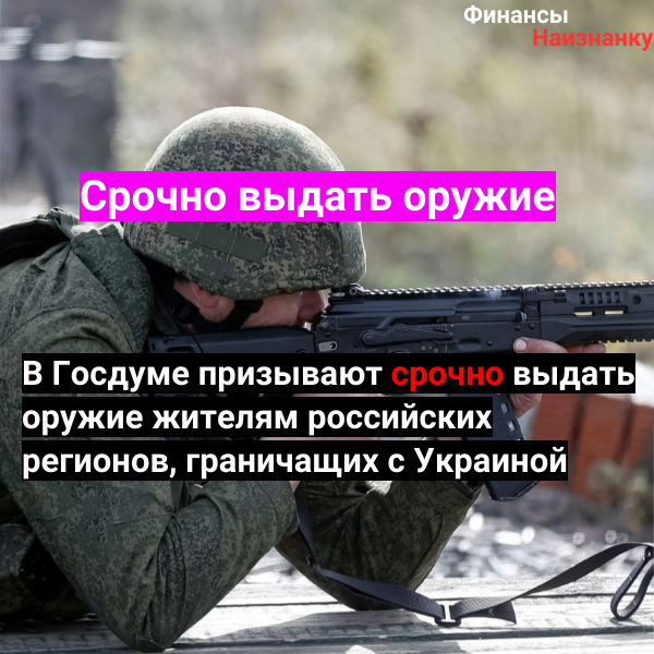 В Госдуме призывают срочно выдать оружие жителям российских регионов, граничащих с Украиной.