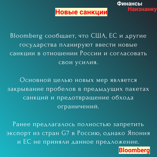 Bloomberg сообщает, что США, ЕС и другие государства планируют ввести новые санкции в отношении России и согласовать свои усилия.