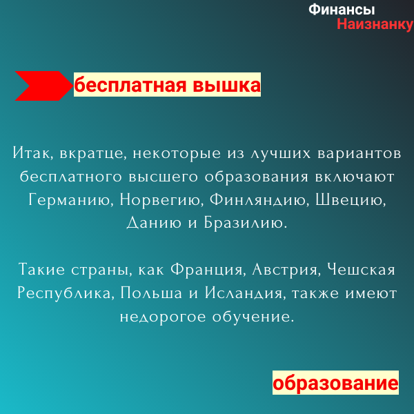Вот некоторые страны, которые предлагают бесплатное или доступное высшее образование: