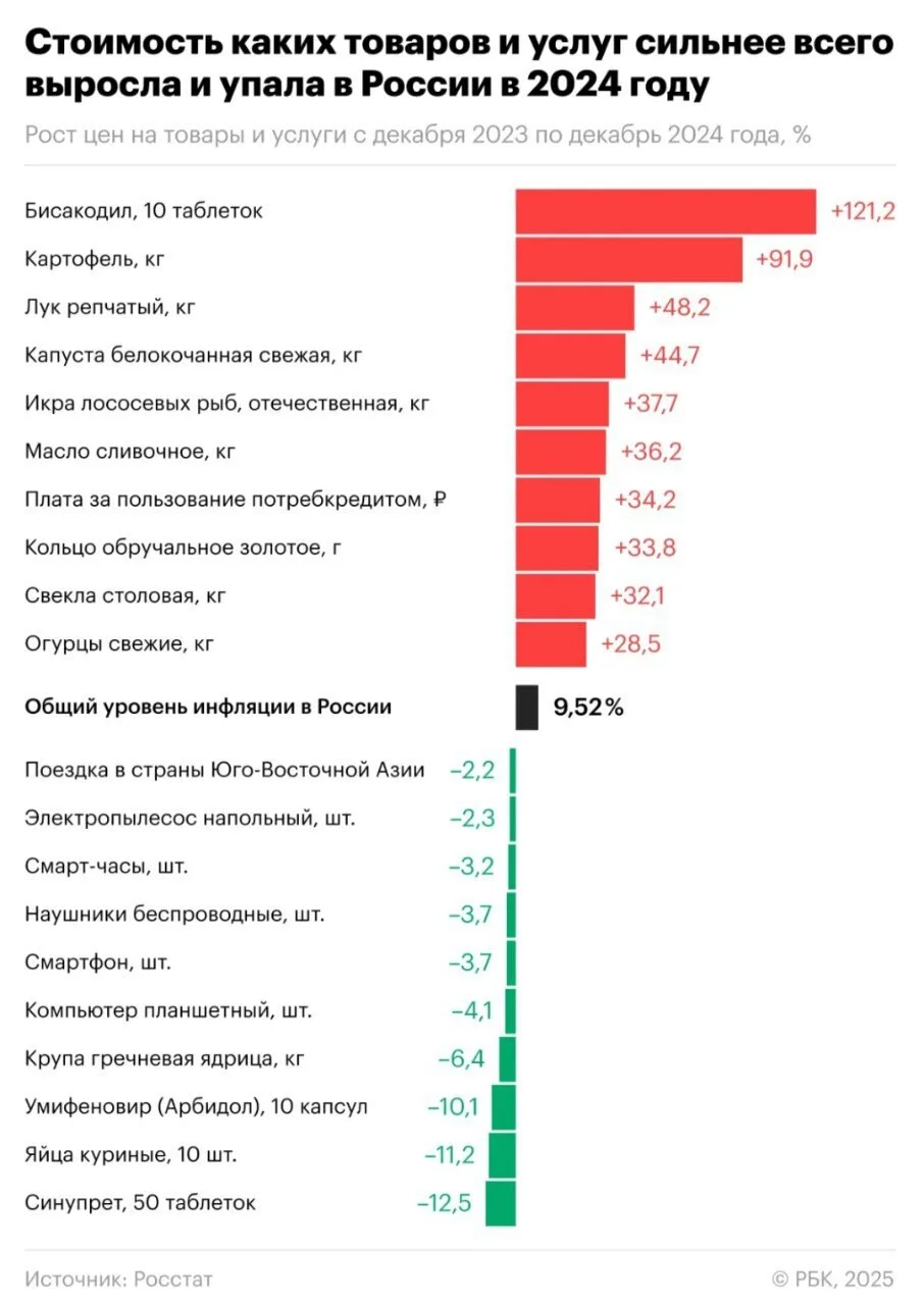 на скрине рост цен (по росстату) на некоторые продукты в 2024… 9.5% говорите?😡