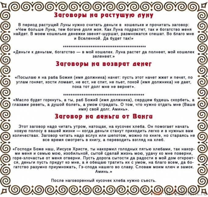 Заговоры на возврат денег