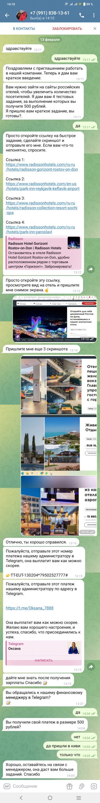 3. Группа для работы (выдает себя за Radissonhotels.com) https://t.me/+lpY6pU0XE1s2YTFi